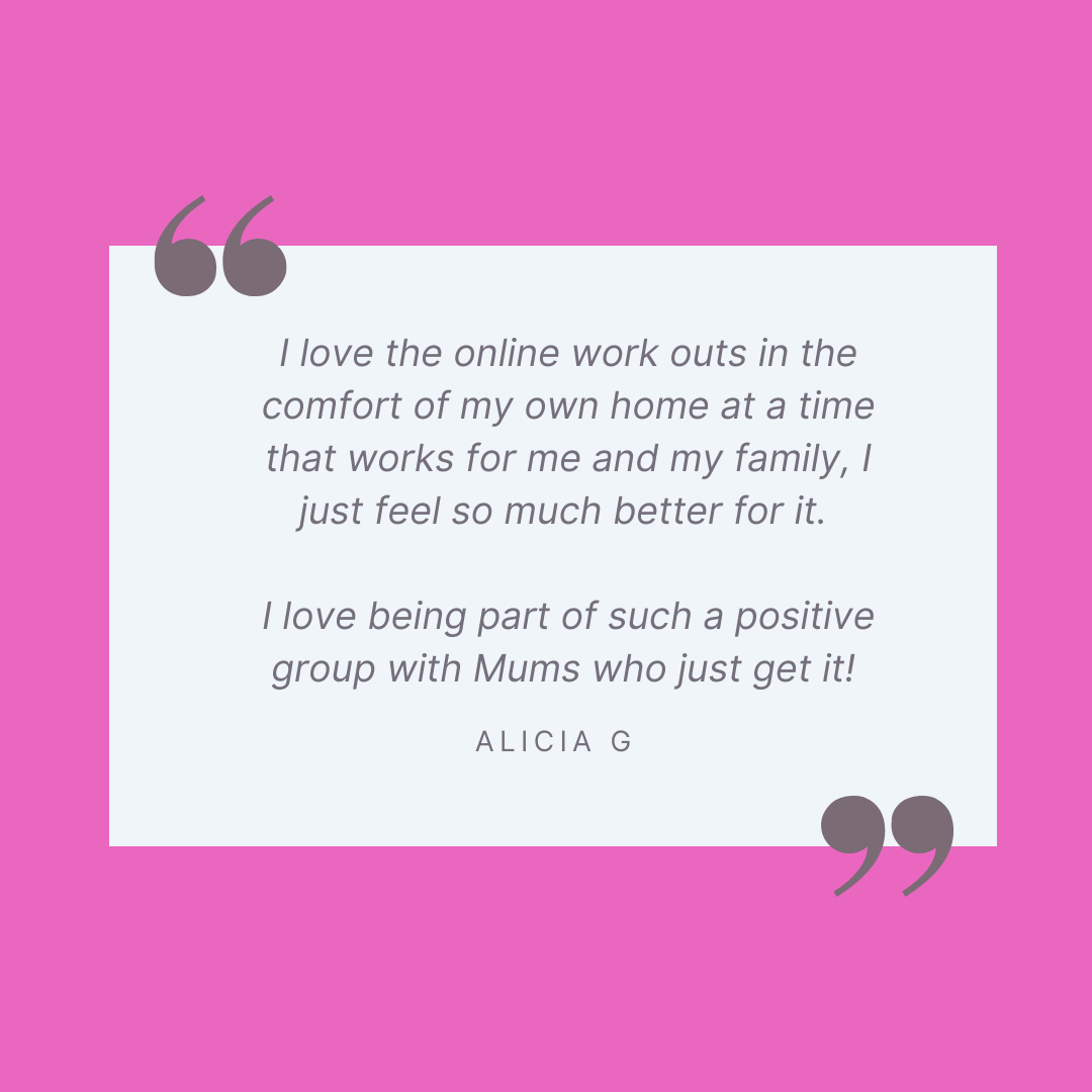 Whilst we have live workouts at 6.15am 3x a week, many of our members do replays which are always available—move when it works for you and let us know when you're done so we can cheer you on!